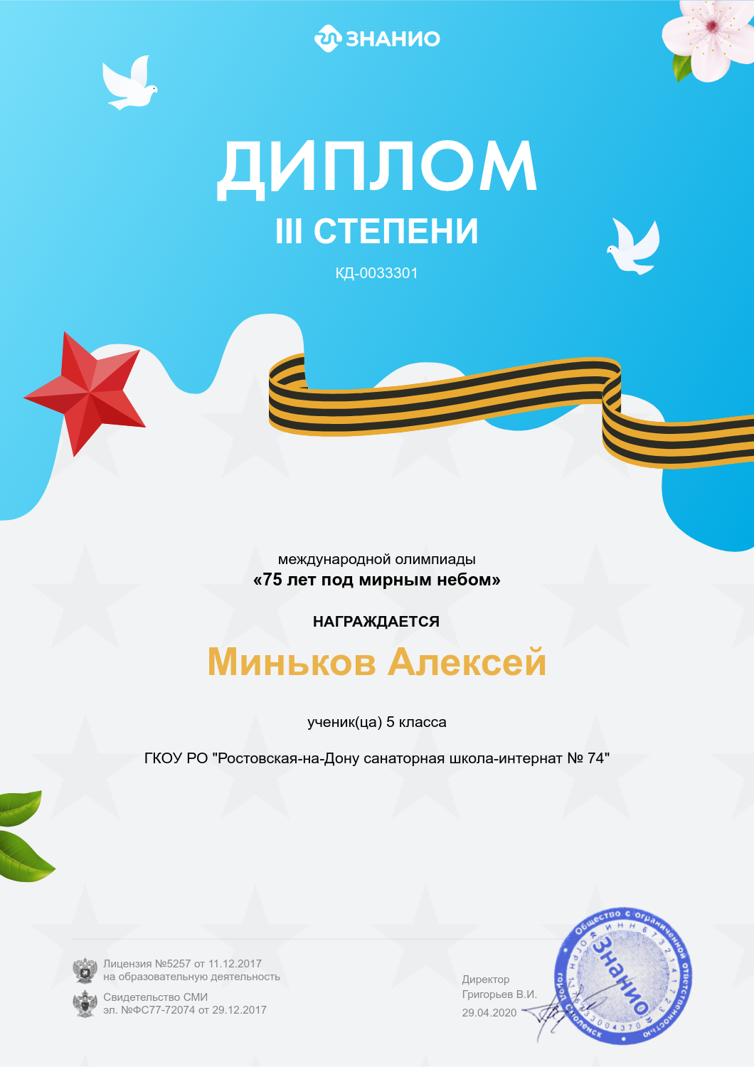 » Миньков Алексей 5 класс